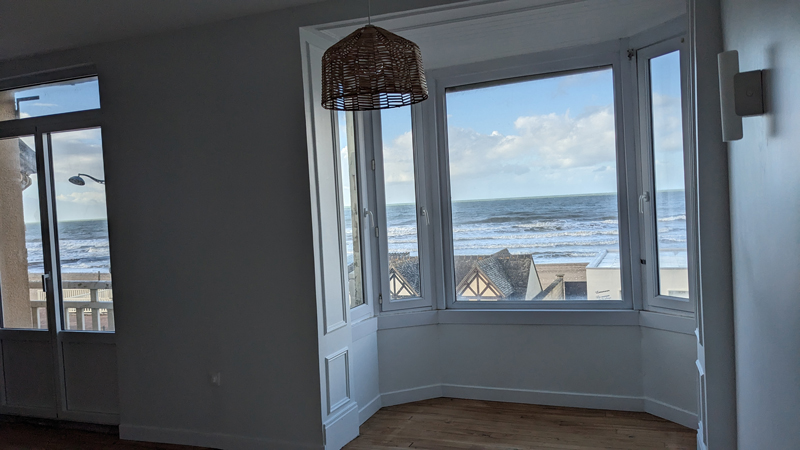 Sa localisation dans une villa historique, avec un balcon et un bow-window vuer mer, plus une petite terrasse coté campagne, en font un bien rare à la vente.